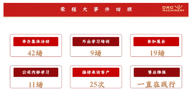 При обзоре важнейших событий года было отмечено, что за 2025 год ООО «Далянь Ронченг Машиностроение» организовала 42 корпоративных мероприятия, провела 9 поездок для обучения, приняла участие в 19 выставках, организовала 11 внутренних обучающих семинаров и приняла 25 групп гостевых клиентов. При этом компания постоянно реализует принцип «100% счастья клиентов» и оказывает комплексные послепродажные услуги по техническому обслуживанию и ремонту оборудования — ключевой элемент успеха в машиностроении в Китае.